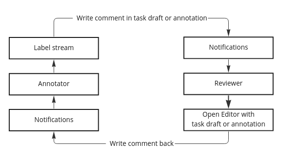 Users can discuss task issues and other problems during labeling and reviewing processes using Comments and Notifications in Label Studio Enterprise.